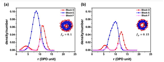 Composition profiles of vesicles formed in different polymer concentrations: (a) fp = 0.1; (b) fp = 0.15.