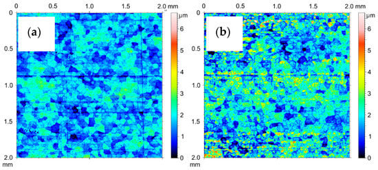 SGP 2D images of the cylinder C1: (a) nonfriction area, (b) tribological cooperation area.