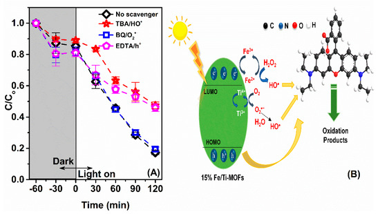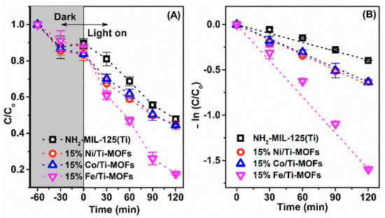 - Ao, D.; Zhang, J.; Liu, H. Visible-light-driven photocatalytic degradation of pollutants over Cu-doped NH2-MIL-125(Ti). J. Photochem. Photobiol. A Chem. 2018, 364, 524–533. [Google Scholar] [CrossRef]