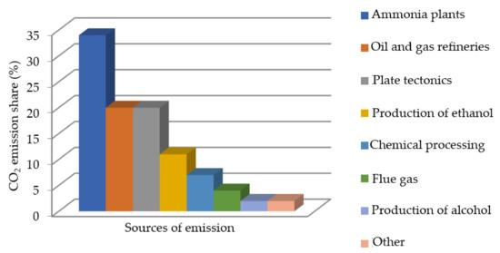 An example of such a waste material is carbon dioxide, which is generated in high quantities during the manufacturing of ammonia compounds [1,2], as illustrated in Figure 1. Whilst on the premises of the manufacturing facility, the carbon dioxide is compressed in its gaseous state until a pressure of approximately 20 bar is achieved, causing liquefaction [1]. In its liquid form, the material can be used to manufacture dry ice via rapid decompression to atmospheric pressure. The resultant material exhibits unique characteristics; for example, a temperature value of −78.4 °C, as well as sublimation in atmospheric conditions [3,4,5,6].