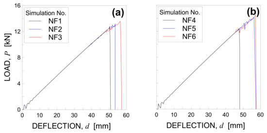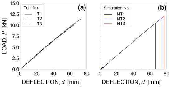 The load-deflection curves obtained are plotted in Figure 5a for each tested specimen.