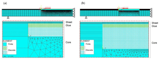 The Finite Element Method (FEM) has the advantage of a great versatility in modelling both complex geometries and nonlinearities involved in the process. The FE models are particularly useful for structures which do not contain discontinuities (for example, cracks). In order to simulate bodies characterised by discontinuities, some strategies exist for employing FEM, for example, the cohesive interfaces method [26] and the extended finite element method [27]. However, FEM is not able to accurately simulate the dynamic process of damage nucleation and propagation, and thus to predict the nonlinear deformation and failure modes of sandwich panels [28].