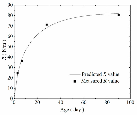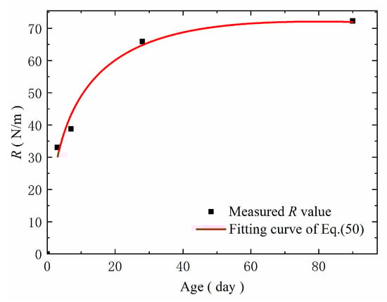 From Table 15, for the steam-cured concrete loaded at the 3rd day, the coefficient of determination for the correction fitted by Equation (50) is higher than 0.99, and the curve trend is close to the measured R value.