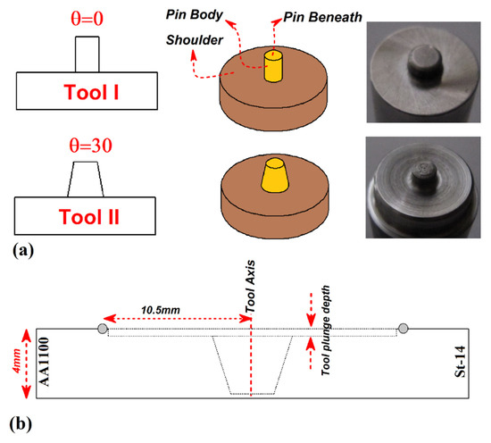 In this study, St-14 steel (1.0338) and AA1100 aluminum alloy were selected as base metals. The base metal was provided by a local market and their properties were evaluated and measured in our laboratory. The base materials sheets were cut into small pieces of dimensions 100 mm × 100 mm × 4 mm. The selected materials’ properties are listed in Table 1. The small pieces of base metals were placed in a flexible fixture in order to keep raw sheets fix during welding procedure.