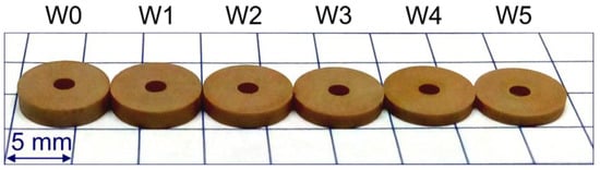 Figure 5. Ceramic elements after grinding in one operation by successive grinding wheels W1–W5 (W0—means state before grinding).