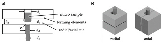 - Vollertsen, F.; Friedrich, S.; Kuhfuß, B.; Maaß, P.; Thomy, C.; Zoch, H.-W. Introduction to Tooling. In Cold Micro Metal Forming; Springer: Bremen, Germany, 2020. [Google Scholar]
