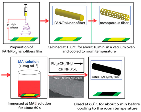 Preparation process of PAN/CH3NH3PbI3 composite nanofiber film. Reprinted from [71] with open access license.
