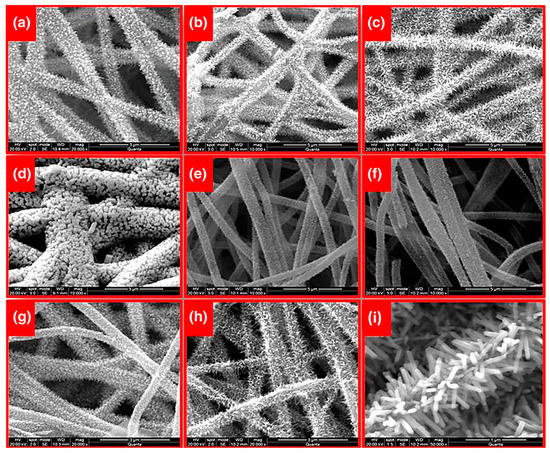In dye-sensitized solar cells, the photoanode has a vital role in the performance of photovoltaic cells as it carries dye and transports the photo-generated electrons of excited dye molecules to the collection electrode. The photoanode consists of a transparent conducting oxide covered by a layer of semiconductor, hence, the structure and morphology of the semiconductor are very important in cell fabrication [26,27,28,29]. Nanoparticulate photoanodes were commonly used because they can provide many active sites for dye adsorption, but inter-particle boundaries lead to reduce electron transport rate and increase electron trapping. In order to tackle this problem, other nanostructures such as nanofibers have been employed [30,31] and they were widely used as photoanode materials for DSSCs [32,33,34,35].