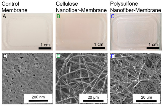 SEM images of nanoporous fibrous mats: (a,b) for polysulfone, (c,d) for polysulfone/poly (lactic acid) nanoporous fibrous mats, (e,f) for poly (lactic acid). Reprinted from [126], with open access license from SAGE.