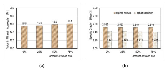 (a) Voids in mineral aggregate results; (b) specific gravity results.