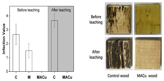- Sun, F.; Bao, B.; Ma, L.; Chen, A.; Duan, X. Mould-resistance of bamboo treated with the compound of chitosan-copper complex and organic fungicides. J. Wood Sci. 2012, 58, 51–56. [Google Scholar] [CrossRef]