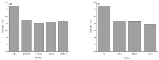 3.4. Density, Water Absorption, and Porosity of PAAC