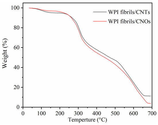 TG curves of WPI fibril–CNTs (or CNOs).