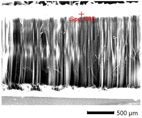 SEM image of ferromagnetic MWCNTs—sample with an optimum flow velocity. Side view of the aligned nanotubes.