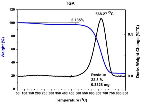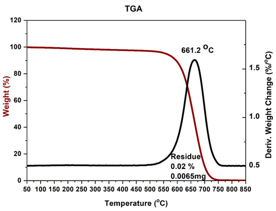 To calculate the purity of the product, an additional thermogravimetric analysis was conducted (Figure 7 and Figure 8).