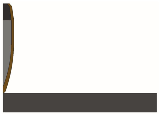 The geometry of the numerical model (target S) is shown in Figure 6. Only a portion of the target, corresponding to a radius of 55 mm was modeled and encastre boundary conditions were applied at the outer edge. Axisymmetric shell elements were used for both the projectile and the target. The average mesh size of 0.1 mm was enough to accurately reproduce the geometry of the projectile. The minimum characteristic length was 0.006 mm, defined as the ratio between the element volume and the area of the largest side. This value led to an initial time step of 1.15 × 10−9 s. As shown in Figure 7, mesh convergence investigation was carried out on the entire ballistic curve in order to choose the correct mesh for the plate. A mesh size of 0.1 mm was adopted for both target S, SA and AS which was the smallest element size at a reasonable computational cost. This was the element size which gave the best accuracy of the numerical model for target S. The number of elements was 49,604 for target S and 74,940 for target SA and AS. The computational time was around 30 min for target S and 1 h for target SA and AS (using eight processors in shared memory parallel processing mode).