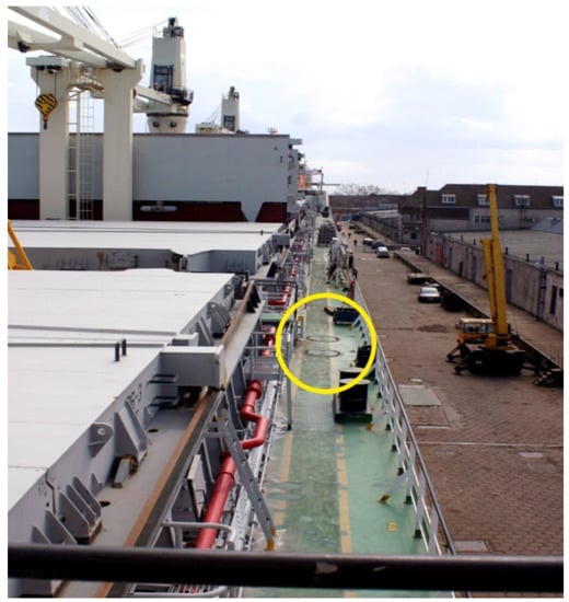 During operation, cracks were found in orifice edges in the deck plating around the access manholes of the ballast tanks. These cracks were examined and tested on-board four handy-size bulk carriers of a major shipowner. Examples of the lids on the main deck of a ship are shown in Figure 2.