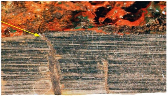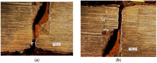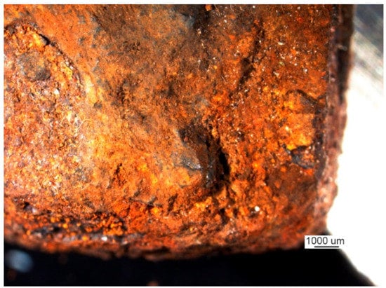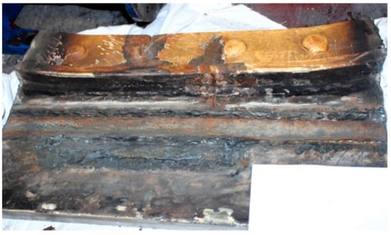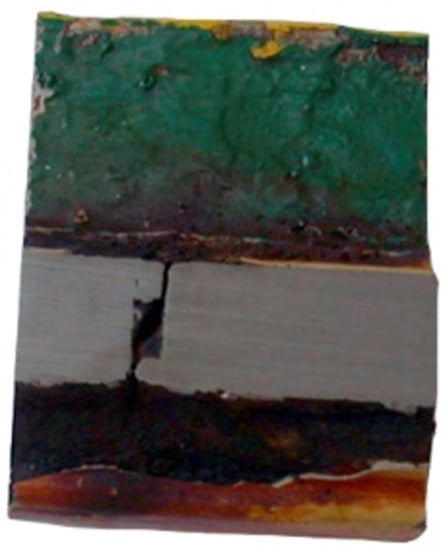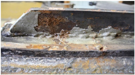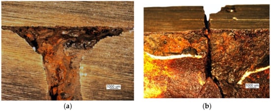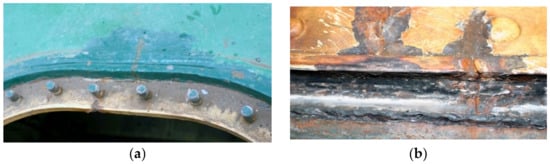 Components of ship hulls are subject to variable loads, which result in fatigue and cracking of their structural materials. This problem concerns ships of various types and has existed for many years [1,2]. Since marine vessels are subject to cyclical and time-varying loads and operate in a very corrosive environment (seawater, salty air), it is commonly agreed that ship hull components crack primarily because of corrosion fatigue [3,4,5]. This phenomenon is the result of galvanic corrosion and the variable stresses caused by severe pitting, followed by a transition into cracks filled with corrosion products.
