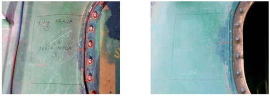 Nonmetallic inclusions in the material or poor-quality material joints can also reduce the service life of lids [40,41,42]. To determine if this is the cause of the damage, studies must be carried out and the results compared [43]. The authors hypothesized that the main decks cracked around manholes because of very poor-quality welded joints and poor-quality steel used to make manholes, which contain large amounts of non-metallic impurities. These factors were accompanied by excessive mechanical loads associated with hull reactions to waves and operation in a corrosive and low-temperature environment [44,45,46]. Another important factor is the influence of residual stresses resulting from welding on the appearance of cracks inside the welds. This issue was deliberated on in the literature [47,48]. The combination of these factors led to the cracking of the hulls on the examined ships. To analyze the influence of the combination of different factors on a given object failure, decision support tools [49,50] and finite element methods [51,52,53] might be applied.