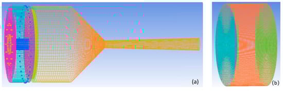 Configuration of the third meshes: (a) internal flow field and (b) external flow field.