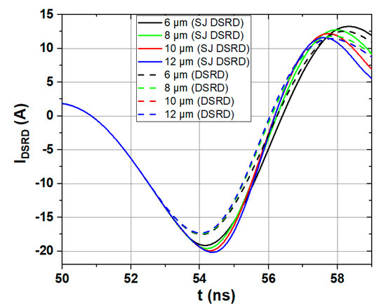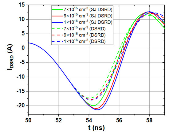 - Yan, X.; Liang, L.; Wang, Z.; Tan, G. Optimization Design for SiC Drift Step Recovery Diode (DSRD). In Proceedings of the 2020 22nd European Conference on Power Electronics and Applications (EPE’20 ECCE Europe), Lyon, France, 7–11 September 2020; pp. 1–7. [Google Scholar]