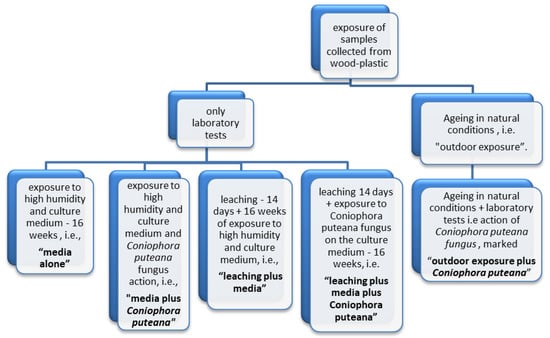 - leaching 14 days + exposure to Coniophora puteana fungus on the culture medium—16 weeks.