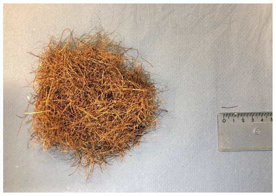 Appearance of coir fibers. The average length of coir fibers is about 15 mm.