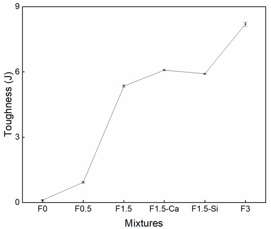 The flexural toughness, expressing the energy absorption capacity of a material, can be calculated from the area under the load-deflection curves: