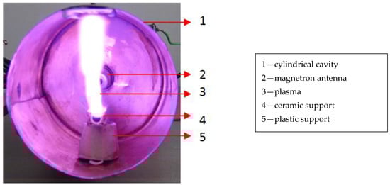 In Figure 3, an image of generated plasma due to the interaction of the tungsten wire of 0.5 mm diameter with the microwave field is presented.