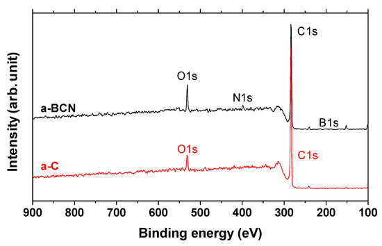 XPS survey spectra of a-C and a-BCN films.