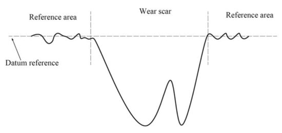 - Select the area outside the wear scar as the reference area. The average height of all points in the reference area is the height of the datum reference.