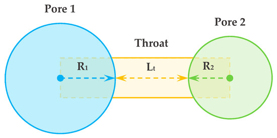 Illustration of pore and throat configuration in the pore network used for diffusion simulation.