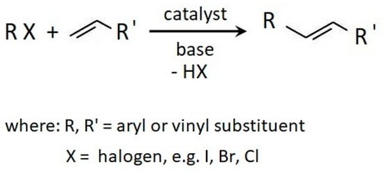 Generally, Heck reaction is palladium-catalyzed coupling of olefins with aryl and vinyl halides, which proceeds in the presence of a base (Scheme 1) [31,32].