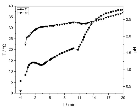 The sol-gel process strongly depends on pH and temperature. Figure 2 shows the pH and temperature progress of a sample without PEO.