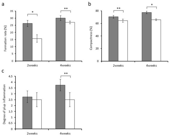 | Moderate inflammation (i.e., weak vasodilation is present without infiltration of blood cells into the dental pulp, but some inflammatory cells—such as polymorphonuclear leukocytes and neutrophils—can be observed) | 2 |