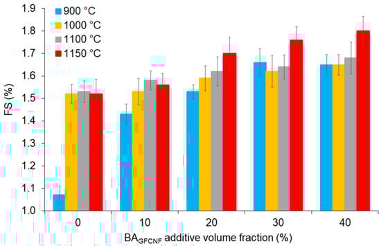 The values of FS depending on the BAGFCNF content, which ranged from 0 to 40%, and firing temperatures applied in the range of 900 to 1150 °C.