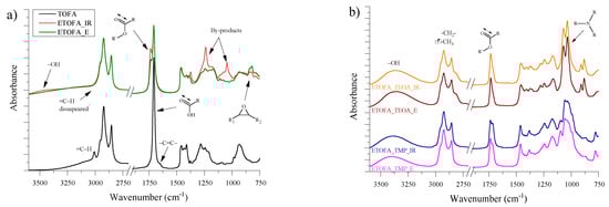 The FTIR spectra of TOFA, ETOFA_IR and ETOFA_E are depicted in Figure 3a.