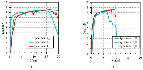 Figure 10. Failure mode of the specimens of mortar formulations: (a) MIV and (b) MV.