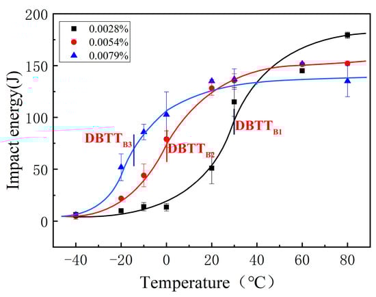 3.1. Effects of B Content on the Impact Toughness