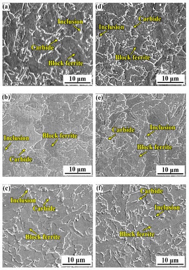 3.2. Effects of B Content on the Microstructure and the Prior Austenite Grain Size