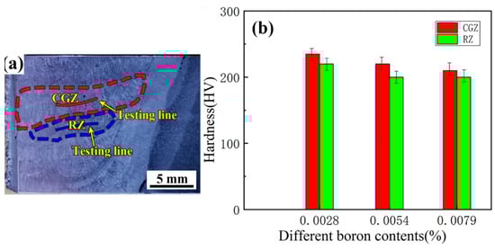 3.3. Effects of B Content on Hardness