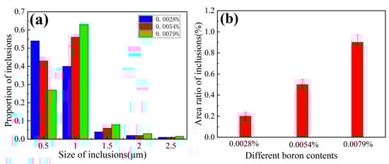 3.5. Effects of B Content on the Inclusions