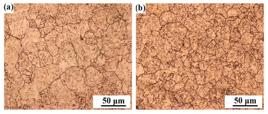 (3) For the top-shelf zone, the change in the impact toughness is caused by the inclusions. When the testing temperature was 80 °C, the dimple fracture dominated the fracture mode. With the increase in B content, the size and density of inclusions increased gradually, which makes convergence and formation of the dimples easier. Therefore, the impact toughness was the lowest when the B content was 0.0079% at 80 °C.