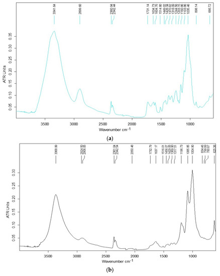 - Zhao, X.; Chen, J.; Chen, F.; Wang, X.; Zhu, Q.; Ao, Q. Surface characterization of corn stalk superfine powder studied by FTIR and XRD. Colloids Surf. B Biointerfaces 2013, 104, 207–212. [Google Scholar] [CrossRef]