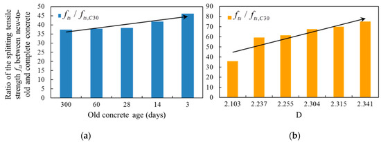 Comparison of influence of roughness and old concrete age on the splitting tensile strength. (a) The effect of age; (b) The effect of roughness.