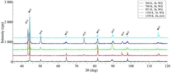 - Vida, Á.; Maksa, Z.; Molnár, D.; Huang, S.; Kovac, J.; Varga, L.K.; Vitos, L.; Chinh, N.Q. Evolution of the Phase Structure after Different Heat Treatments in NiCoFeCrGa High Entropy Alloy. J. Alloys Compd. 2018, 743, 234–239. [Google Scholar] [CrossRef]