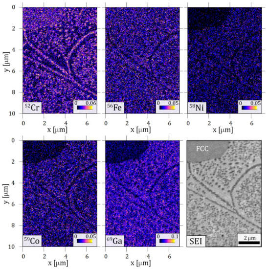 - Pillatsch, L.; Kalácska, S.; Maeder, X.; Michler, J. In Situ Atomic Force Microscopy Depth-Corrected Three-Dimensional Focused Ion Beam Based Time-of-Flight Secondary Ion Mass Spectroscopy: Spatial Resolution, Surface Roughness, Oxidation. Microsc. Microanal. 2020. [Google Scholar] [CrossRef]