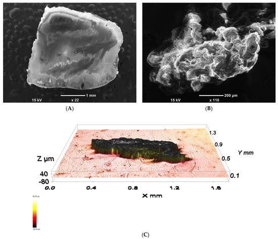 SEM micrograph of a common as-produced LDPE pellet (A) SEM micrograph; (B) and profilometry image (C) of LDPE powder prepared by grinding.