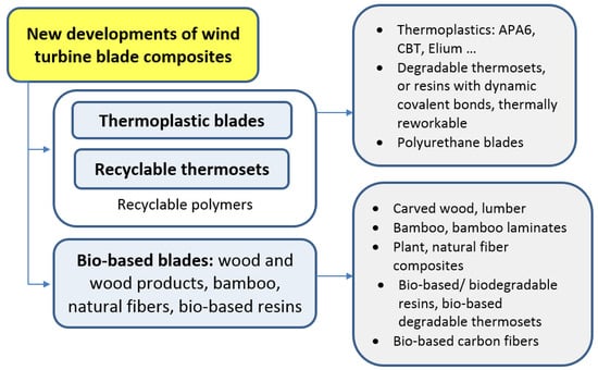 An alternative way is to use bio-based or/and biodegradable fibers or lumbers (in best case, combined with bio-based and biodegradable matrix), and is considered in the next section. Figure 8 shows a schema of new directions of the development of wind turbine blade materials.