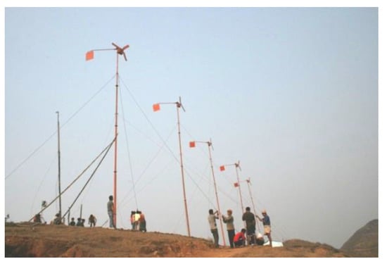 Locally produced wooden wind turbine in Nepal: testing and installation in Dhulikhel region. The figures are reprinted from [147] with kind permission of Elsevier.